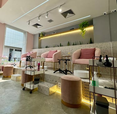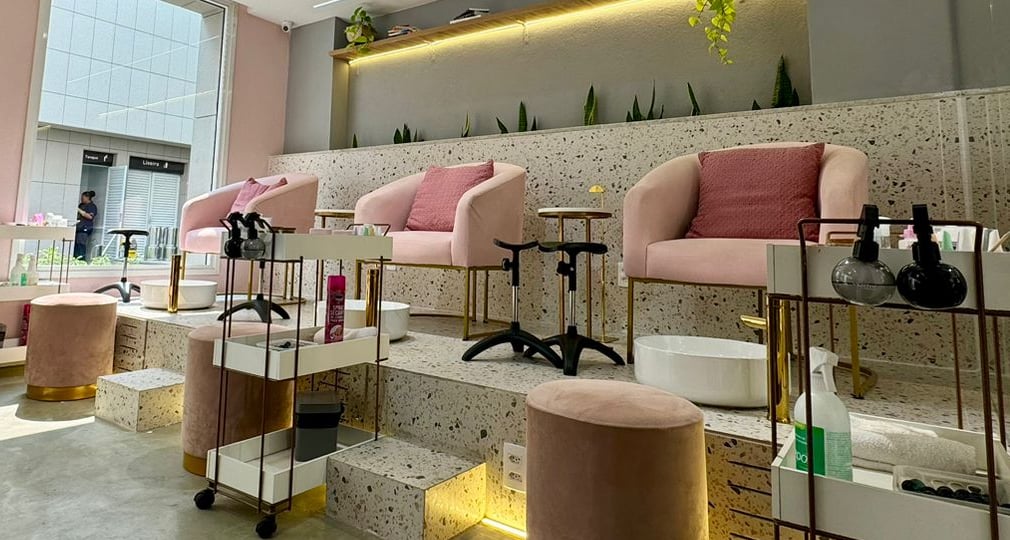 Um espaço de autocuidado para mãos e pés, onde a autoestima é elevada com serviços de podologia e esmaltação em um ambiente elegante e acolhedor.